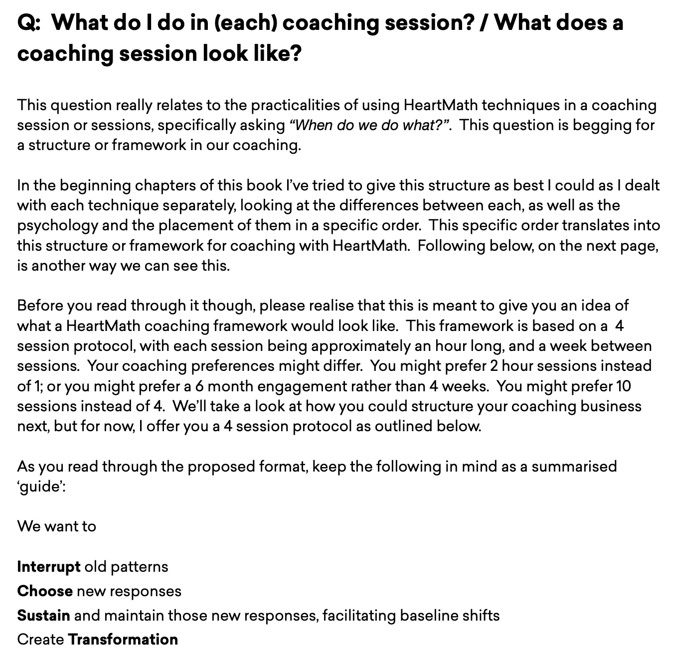 Take your coaching to the next level.  Written specifically for HeartMath Coaches by a working HeartMath Master Coach and Trainer.
