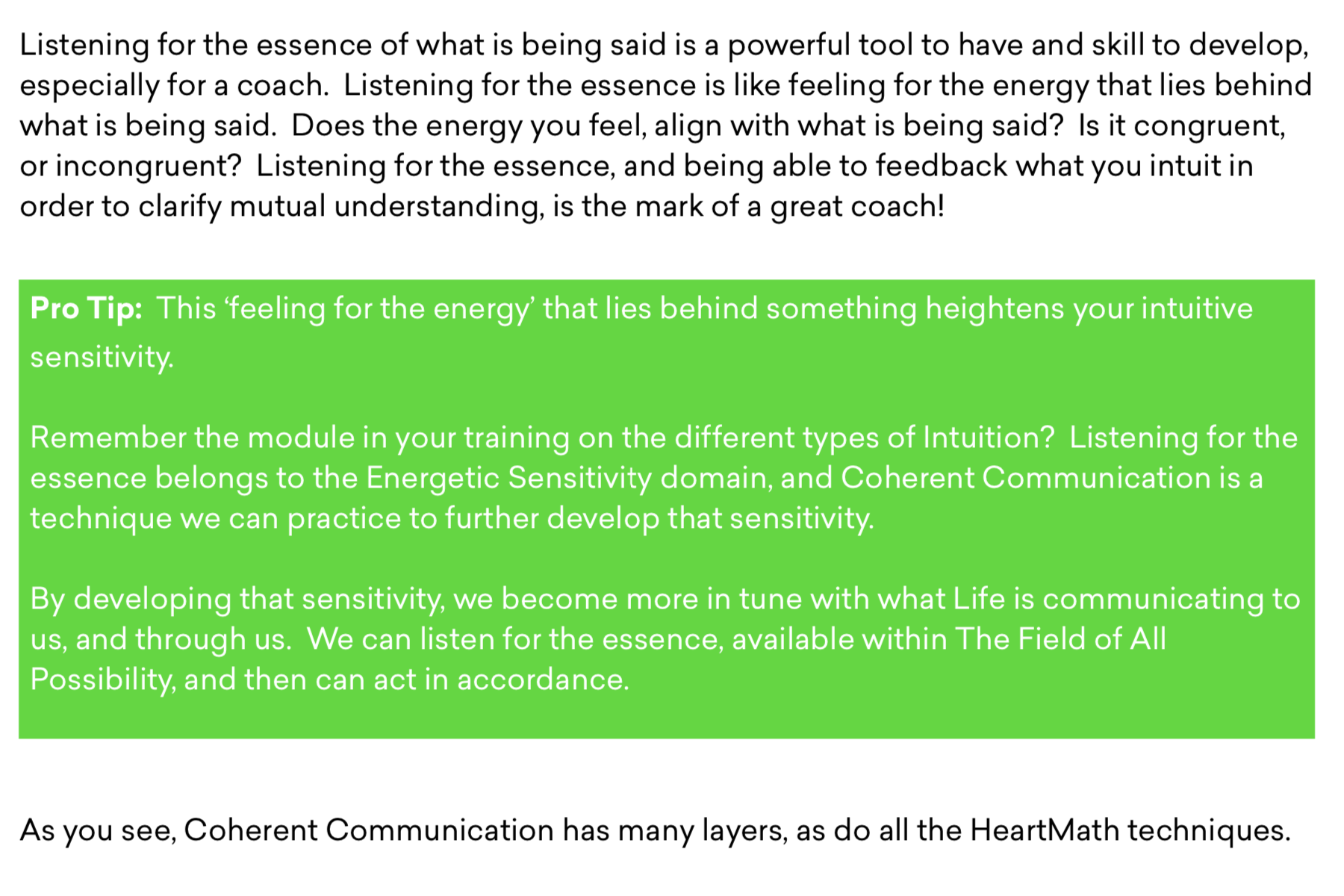 • Explore the subtle differences between each HeartMath technique inside a coaching framework